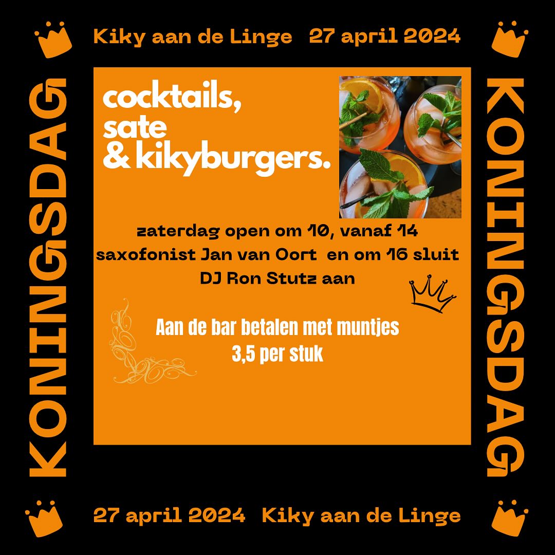 Koningsdag 2024 aan de Linge. Met leuke muziek, cocktails, saté en kikyburgers. Kom jij ook?